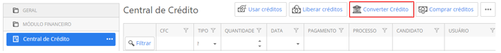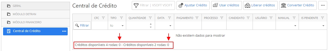 - Na parte inferior do lado esquerdo estará visível se o CFC possui créditos disponíveis de ambas as categorias.