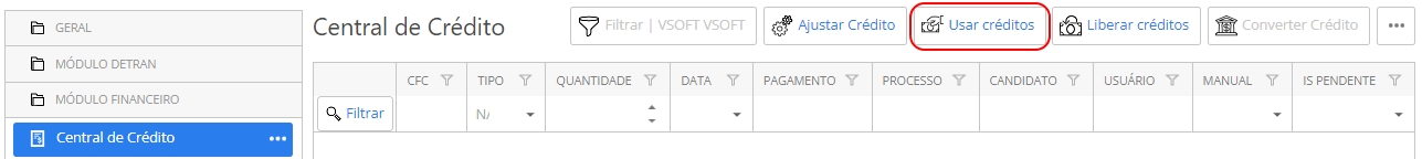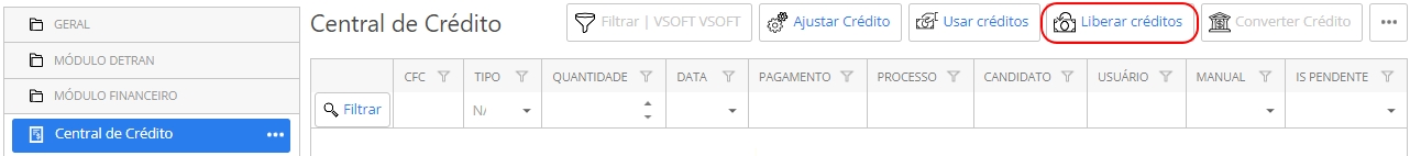 - No menu lateral esquerdo, clique em “Módulo Financeiro” e em seguida em “Central de Crédito”;