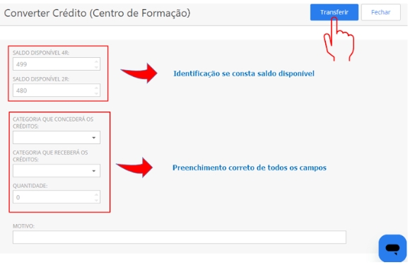 OBS: certifique-se que está transferindo os créditos da categoria correta.