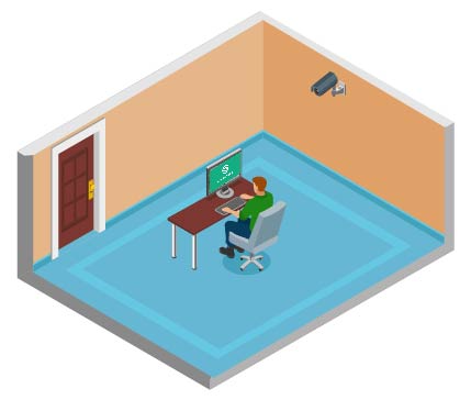 A câmera deverá ser posicionada na lateral do candidato de forma que capte toda a área do ambiente de realização da prova, inclusive portas e janelas, conforme ilustração abaixo:
