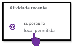 - Em "Atividade recente", selecione as configurações da plataforma SuperAula.