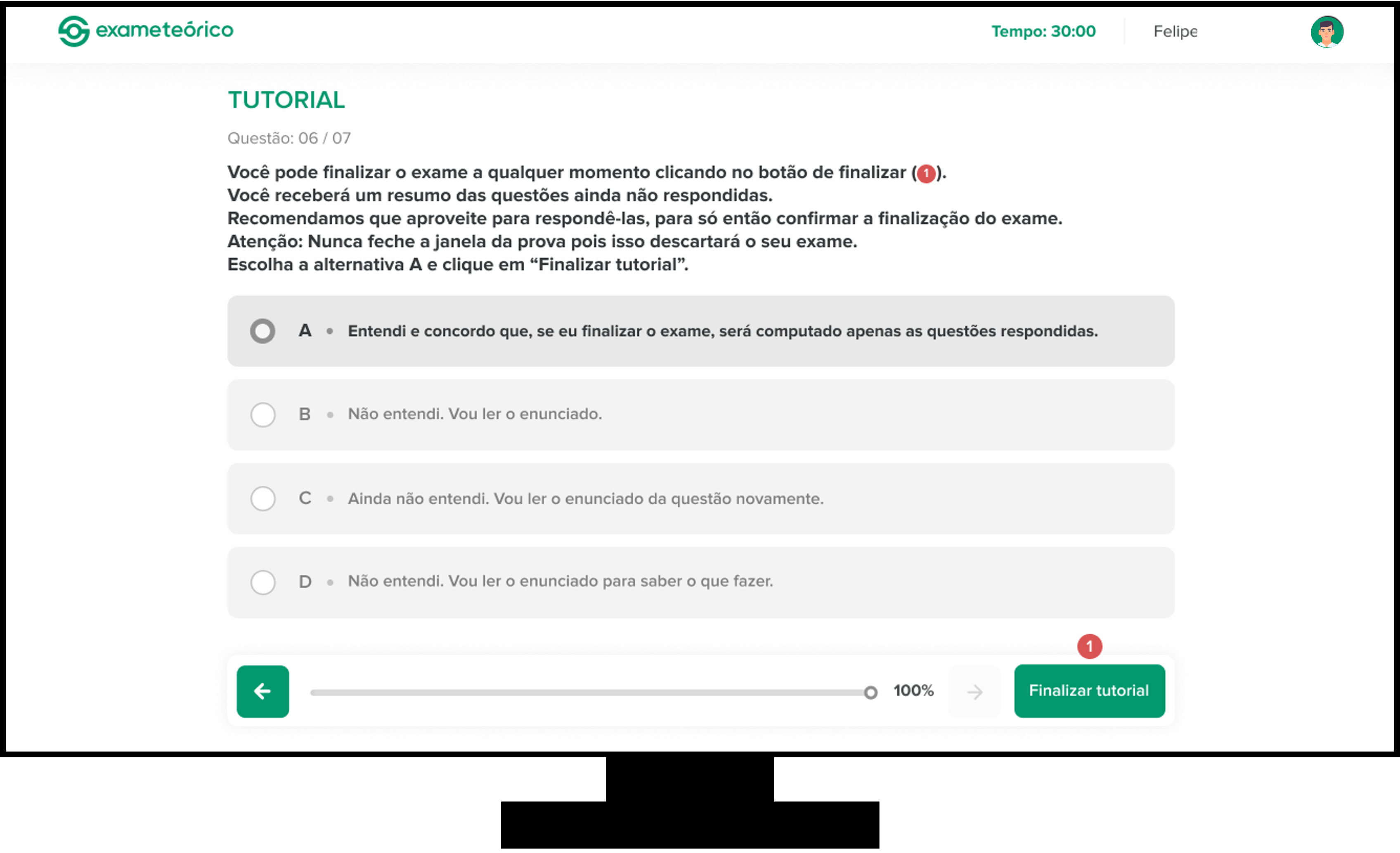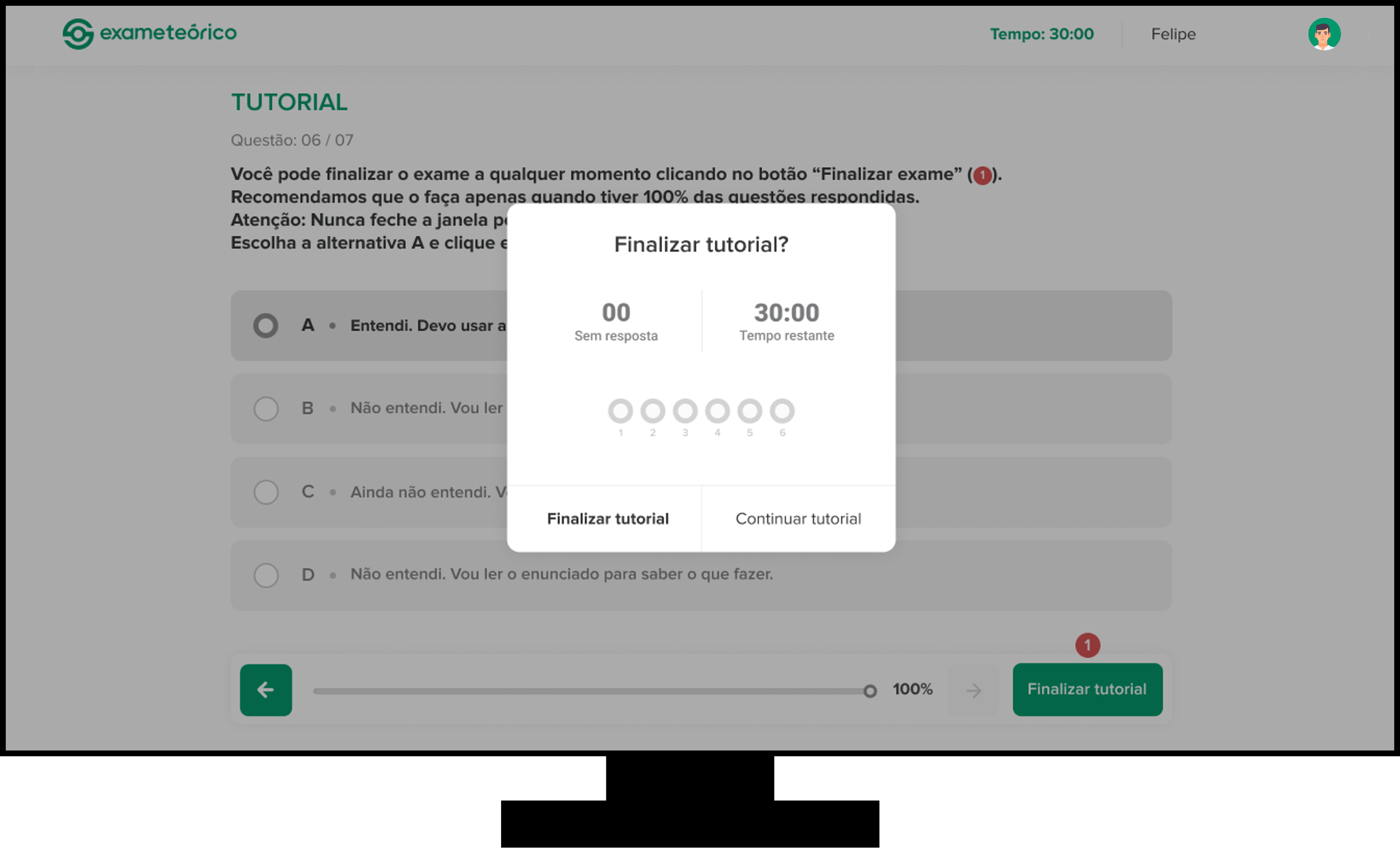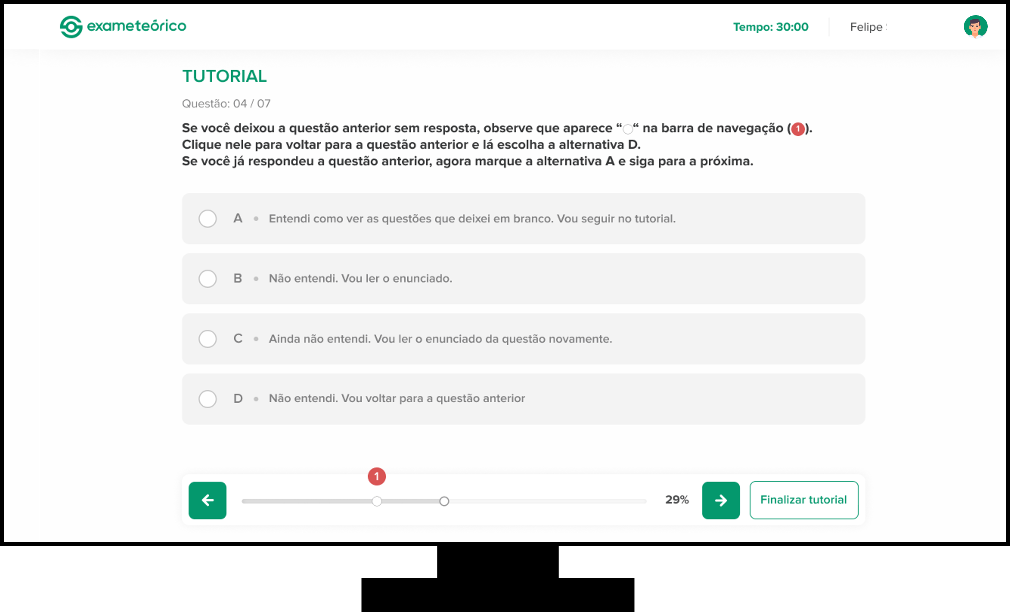 Agora, antes de realizar a prova, o aluno vai fazer uma simulação de prova em formato de tutorial para conhecer melhor a plataforma e ter maior facilidade em realizar o exame.