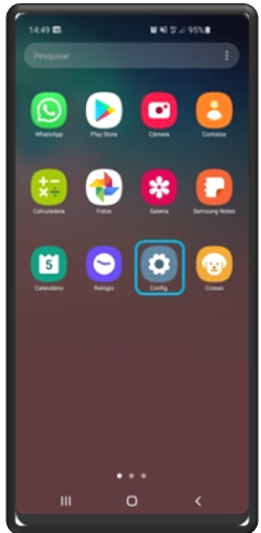 1º Passo: Acesse a tela de aplicações do celular, em seguida clique em "Config".