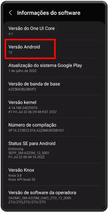Pronto! No exemplo acima, foi identificado que o o aparelho tem o sistema operacional Android 12.