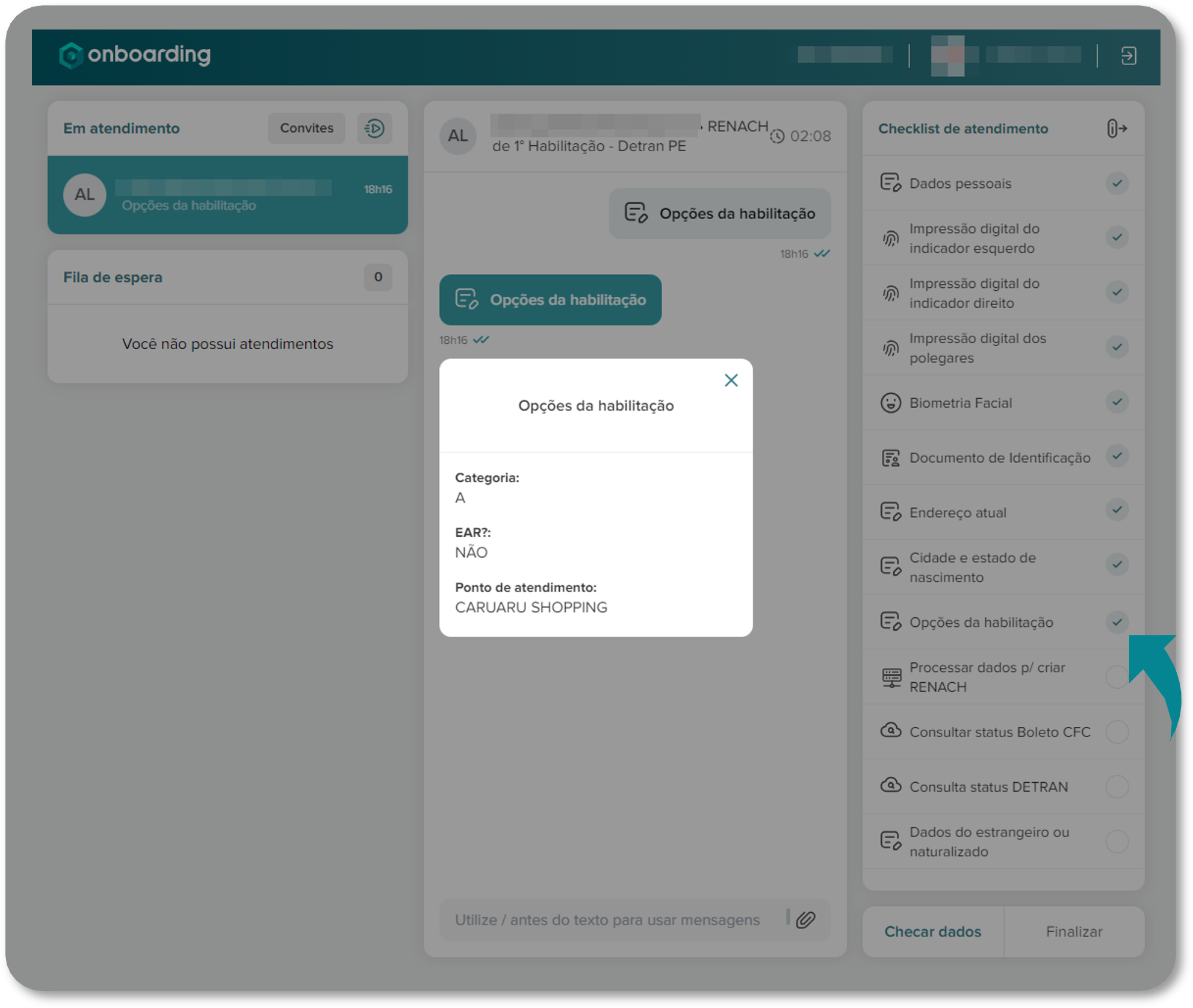 Vale salientar que a opção de EAR só poderá ser selecionado em casos de primeira habilitação das categoria A e A+B.