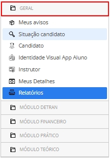 1º passo: acesse o sistema SuperPrático do seu estado, clique em Módulo Geral e na opção Relatórios.
