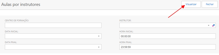 3º passo: o sistema abrirá uma nova tela para preenchimento de dados. Insira o nome do Centro de Formação, do Instrutor e as datas inicial/final do período para gerar o relatório.