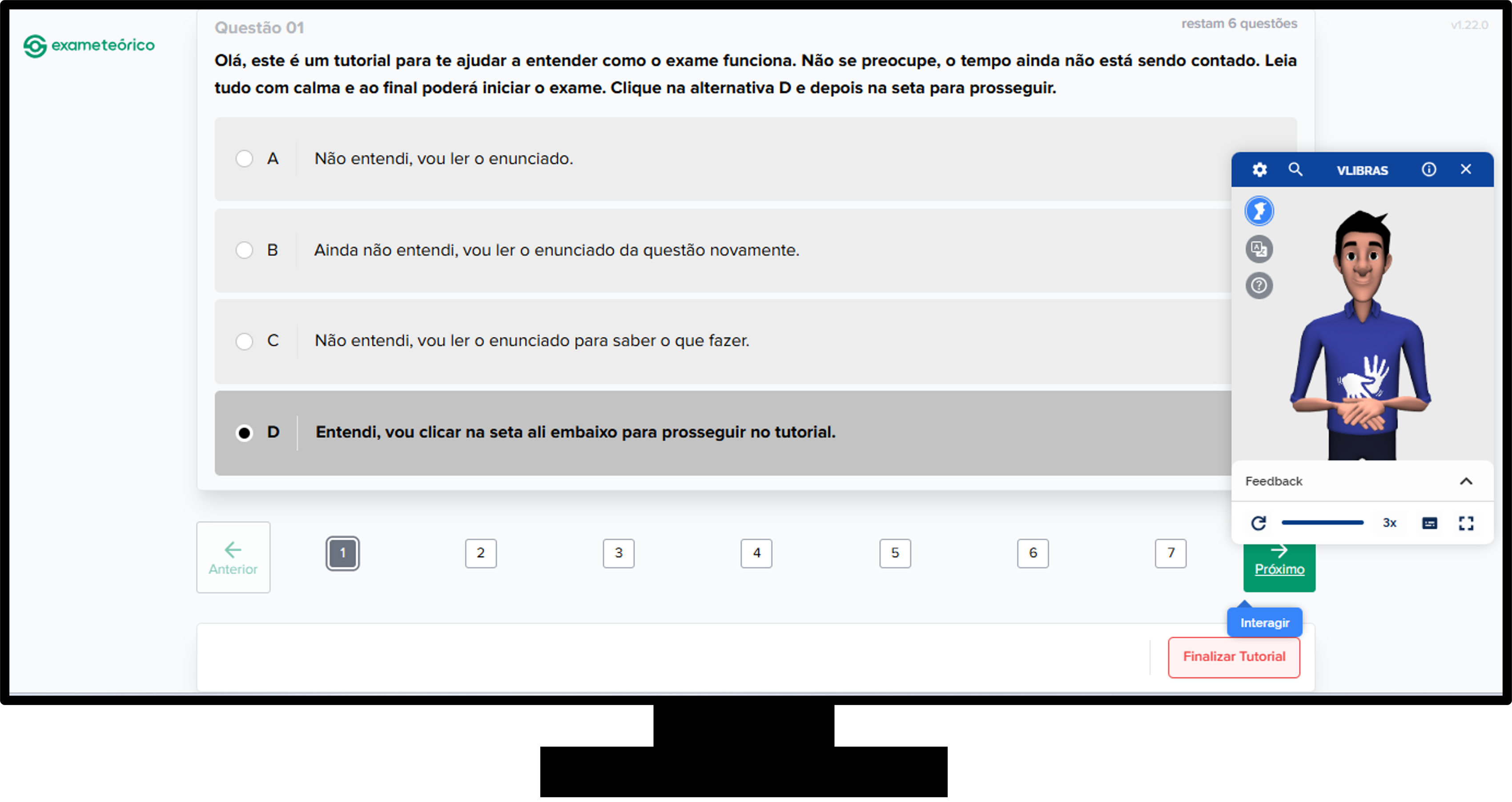 Visando oferecer uma experiência ainda melhor para os candidatos, está disponível na página do Exame Teórico a funcionalidade do VLibras.
